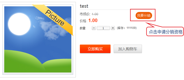 2.在产品详情页面点击我要分销,申请成为分享销商