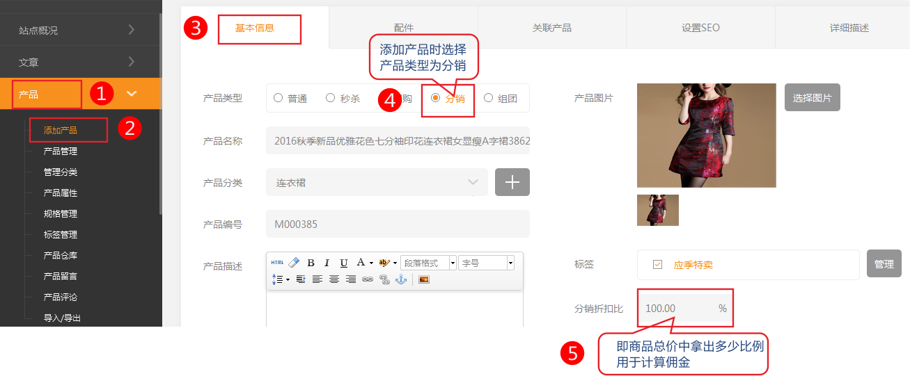例原价是100元产品分销折扣比例设置为50% 一级分销获取提成比例为6%