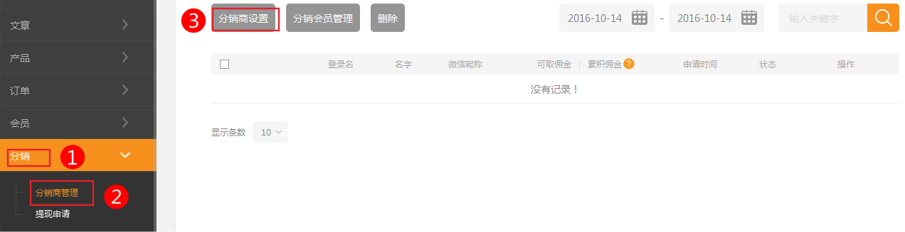 2、后台依次点击 分销-》分销商管理-》分销商设置